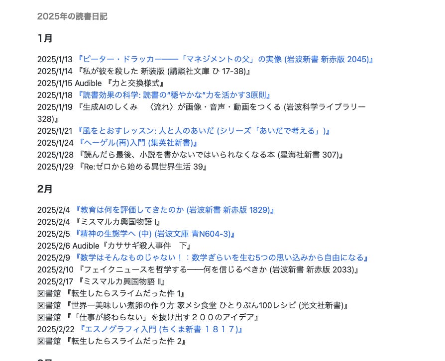 NotionやObsidianのbases機能を使えば、かっちょいいデーターベースが作れて、振り返りもワクワクした気持ちで行えそうな気もしますが、実際のところはどうかわかりません。(冊数にも依りますが)案外手書きのノートの方が味があって振り返りを楽しめる可能性もあります。そのあたりは、実際にやってみて感触を確かめるしかないでしょう。